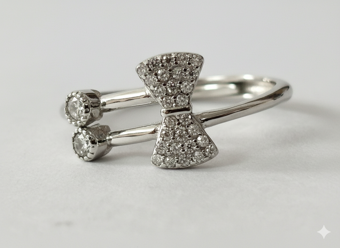 • Exquisite Design: Features a delicate bow motif encrusted with precision-cut cubic zirconia for a subtle, sophisticated sparkle.